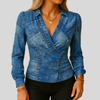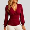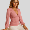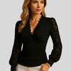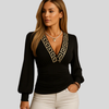 En mångsidig långärmad topp med V-ringning som kombinerar enkelhet och subtil stil – perfekt som ett fristående plagg eller under jackor och koftor för en elegant vardagslook. Dess rena linjer och smickrande V-ringning gör den till ett basplagg i garderoben som passar för en mängd olika tillfällen.