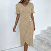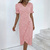 Perfekt för vår- och sommarksyntetiskt tyg, den här klänningen blandar avslappnad enkelhet med elegant elegans.