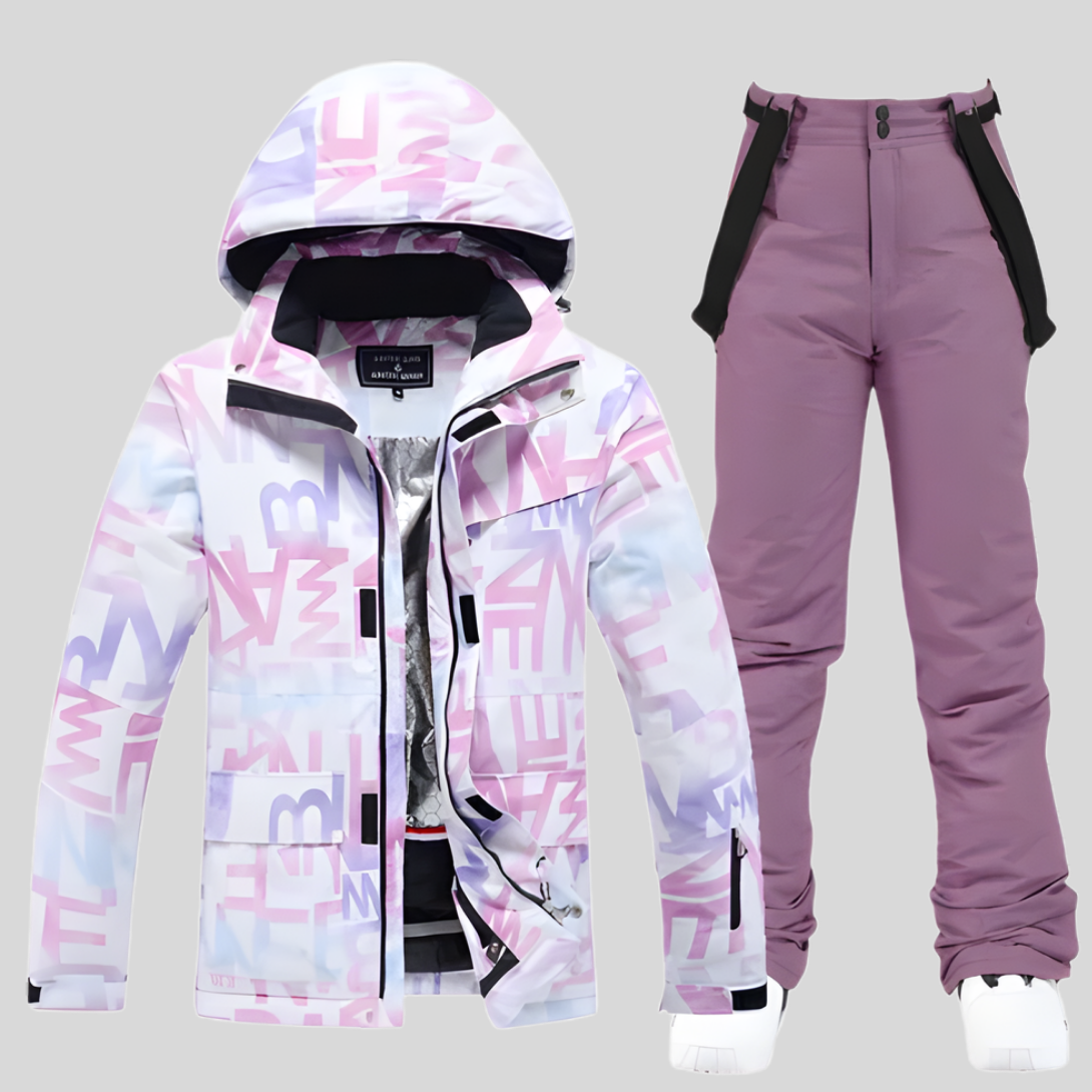 Detta skidset för kvinnor kombinerar genomtänkt design med praktiska funktioner för aktiva vinterkläder. Det tvådelade setet (jacka + byxa) har material och ytbehandlingar utformade för den kalla årstiden. Med förbättrat skydd mot elementen och en förfinad silhuett passar detta set både i backen och efter skidan.