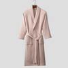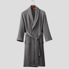 Denne badekåbe i bomuld tilbyder et elegant touch til din hviletid uden at føles klodset eller overdrevet. Det bløde væv falder flot, og omlotdesignet giver en hyggelig følelse til rutiner efter brusebadet eller afslappede morgener. Den er skræddersyet til at passe både mænd og kvinder med en moderne form, der komplementerer mange visuelle elementer.