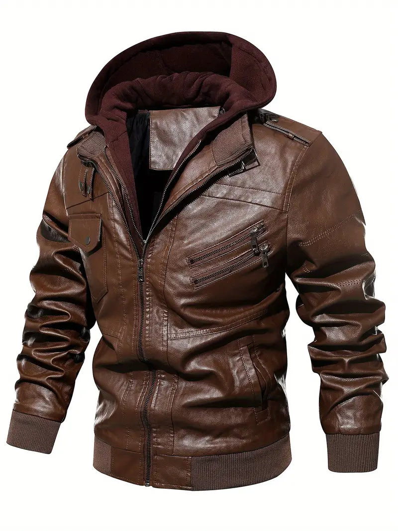 Jack - Tyylikäs PU-synteettinen kangastakki hupulla ja vetoketjulla miehille