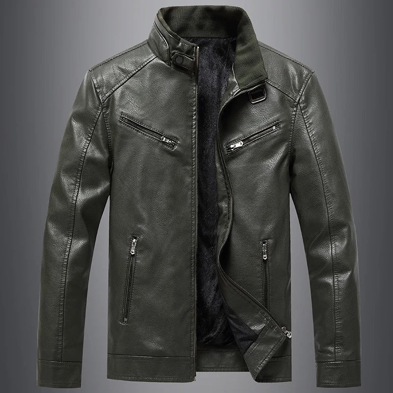 Alonzo - Varm fleece PU-takki miehille syksy talvi