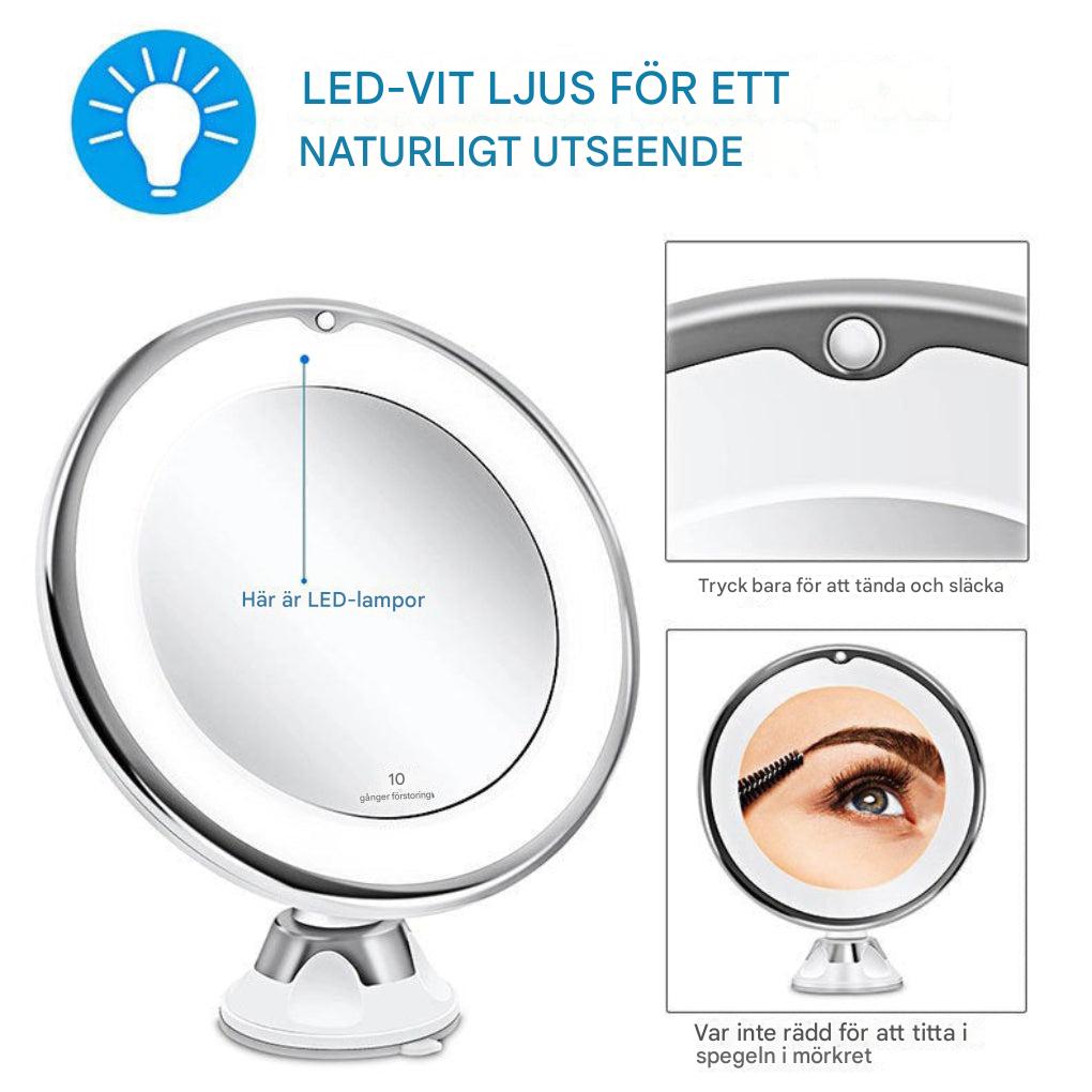 ✔️ 10x forstørrelse – For ultrapresis sminke, hudpleie og grooming
