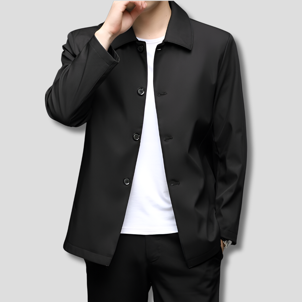 En lang herrekåpe i ensfargede farger som beskytter mot vind samtidig som den beholder et pent og stilrent utseende. Perfekt å bruke over lag på lag under kjøligere årstider eller vindfullt vær.