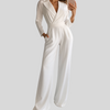 Denne jumpsuiten med brede skulderstropper kombinerer klassisk snitt med avslappet form i ett lag. De brede skulderstroppene gir støtte på toppen, mens den fulle benlinjen gir bølgende dekning. Perfekt for hverdagsbruk, ærender eller avslappede møter når du foretrekker et alt-i-ett-antrekk.
