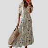 En grasiøs maxikjole som blander bohemsk sjarm med brukervennlighet – perfekt for sommerkvelder, spesielle anledninger eller for å gjøre et statement i avslappet stil.
