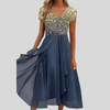 Denne kjolen har moderne linjer og en blanding av ensfargede trykk, laget for å skille seg ut uten å være overveldende. Passformen og stilen gjør den egnet for bryllup, fester, middager – eller alle arrangementer hvor du vil føle deg distinkt oppkledd.