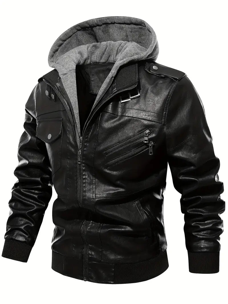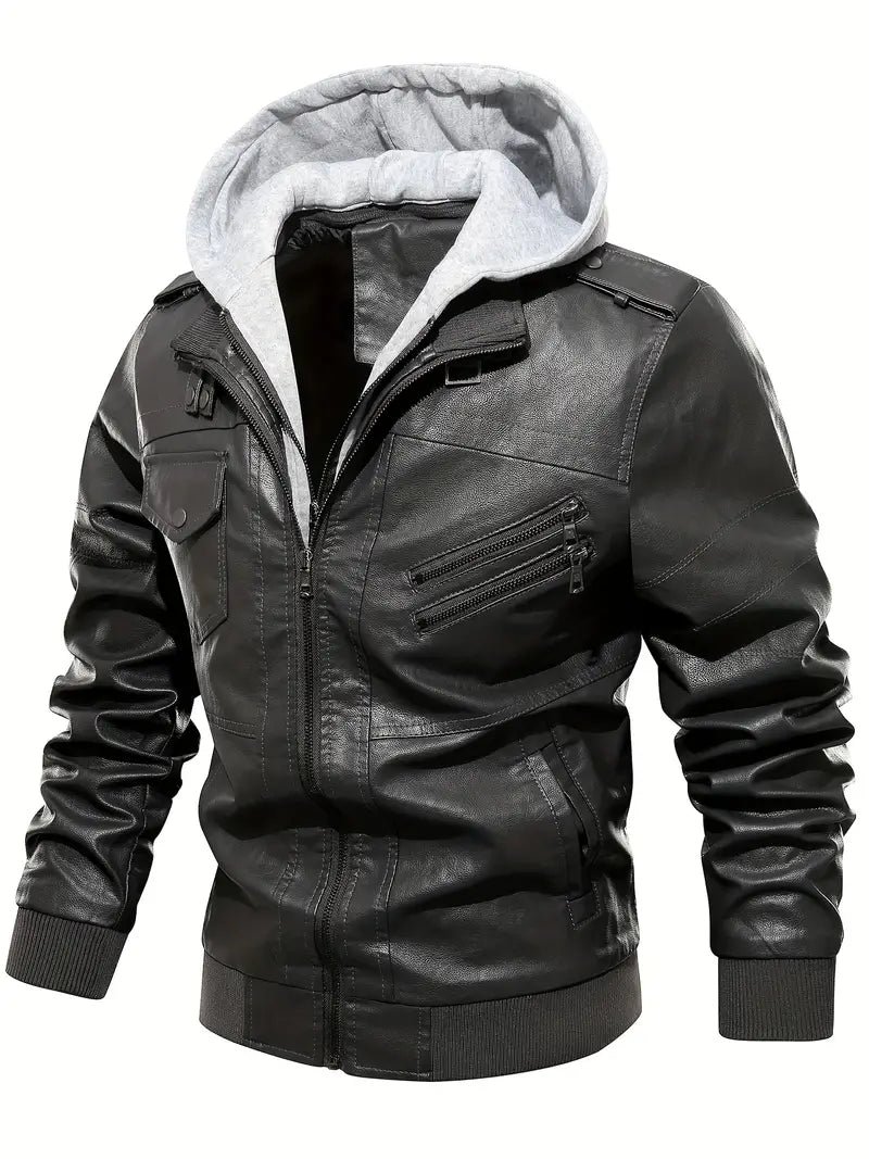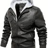 Jack - Snygg PU-syntetisk stoffjakke med hette og glidelås for herrer