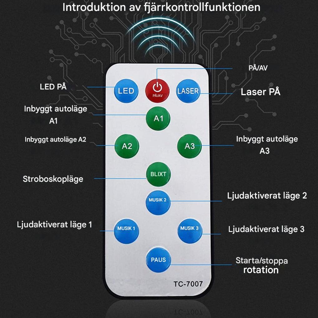 Få den ultimate feststemningen til ethvert rom med denne 2-i-1 laserdiscolampen. Den er designet for musikkelskere og evententusiaster, og har lydaktivering og tilpassbare innstillinger, slik at du enkelt kan skape en dynamisk og engasjerende atmosfære.