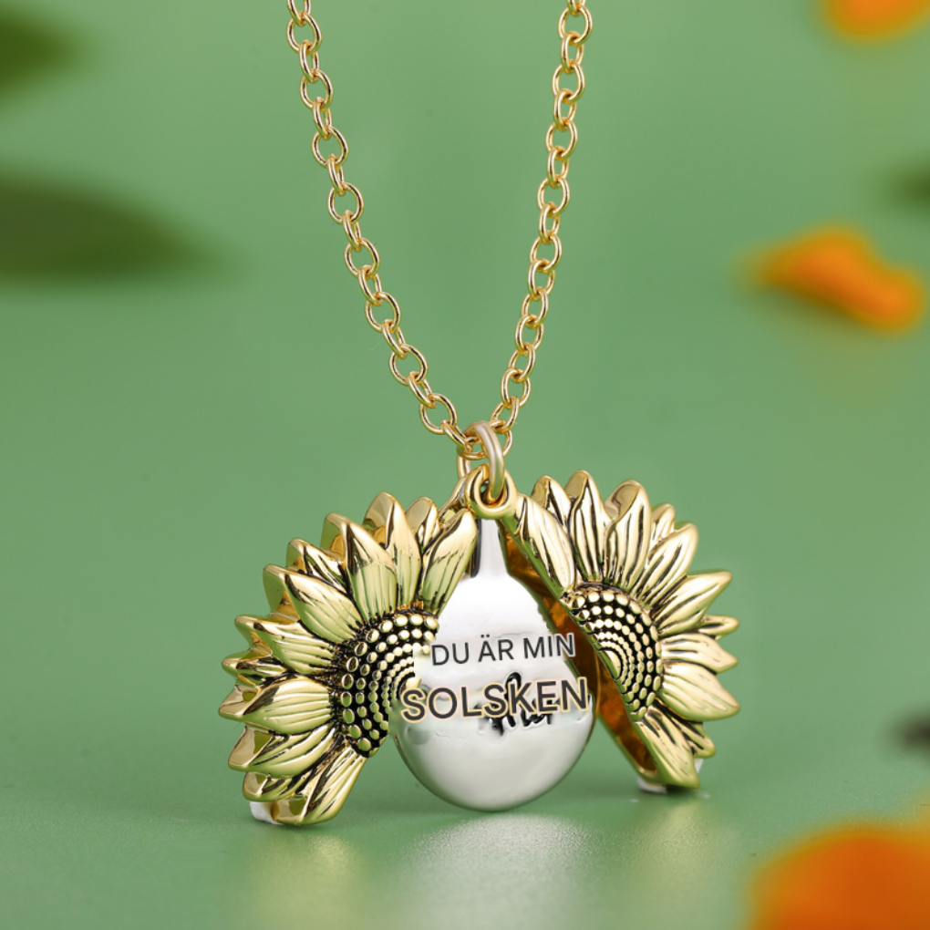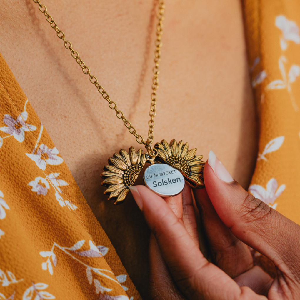 Dette halskjedet gir smykker et lyst "solskinnsmotiv" som er perfekt for hverdagsbruk eller som en inderlig gave. Anhenget fanger en strålende, oppløftende følelse og kombinerer enkel design med meningsfull symbolikk som passer til mange anledninger.